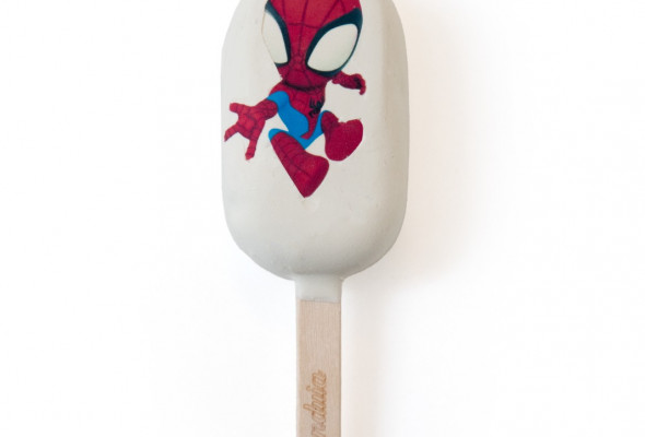 Helado de dulce de leche, bañado en chocolates con decoración de bob esponja.